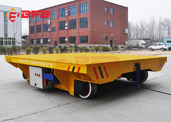 The railway transfer cars are powered by cable reels at the bottom of the carts. One end of AC 380V cable is connected with the power source and the other end is linked to the motor. The cable is wound around cable reel. When the carts run, the cable reels let out or collect the cable. The motor is controlled through the AC control system to drive gear reducer and wheels to control the carts, for example, start, stop, go forward, backward and adjust the speed and so on. The running distance can reach up to 200m.